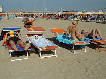 Harvey sunning himself on a beach in Rimini with Craig, cousin Connie and Claudio... and hundreds of other sun-worshipping Italians.