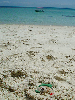 Enjoying the seclusion on Lizard Island, our boat tethered yonder.