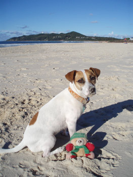 Harvey and Marlee on Main Beach Byron Bay, New South Wales.
