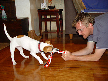 One of her favourite things to do: tug-of-war.