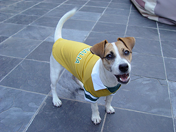 Yes... doggie clothes. But she looks so cute in her Wallabies polo shirt!