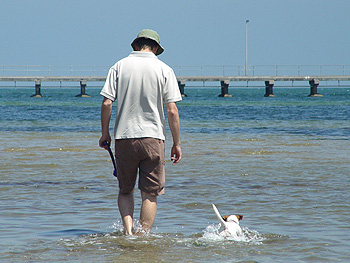 A man and his dog.